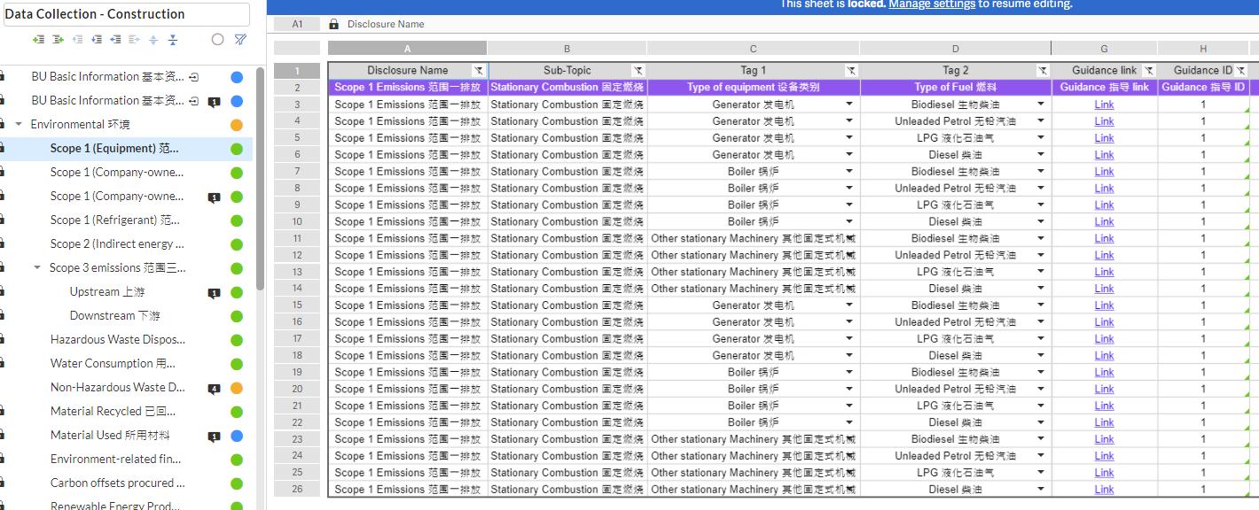 • 最初のフェーズでは、 RA および Excel を一時ソースとした ESGデータを Workiva 上に集約するためのテンプレート開発(英語および中国語)を行った。