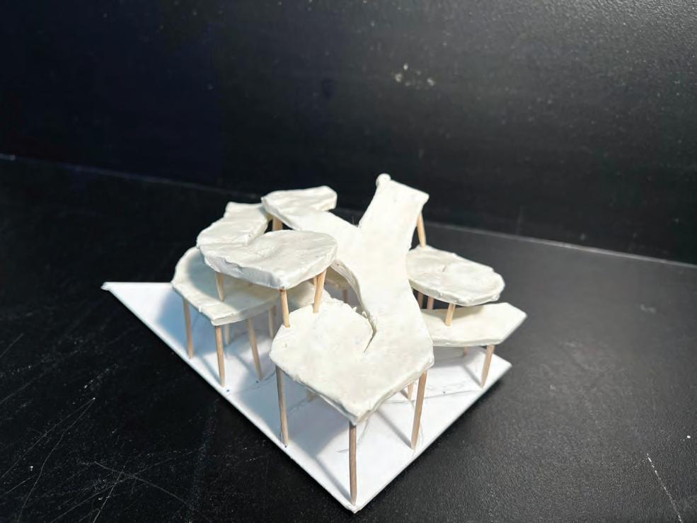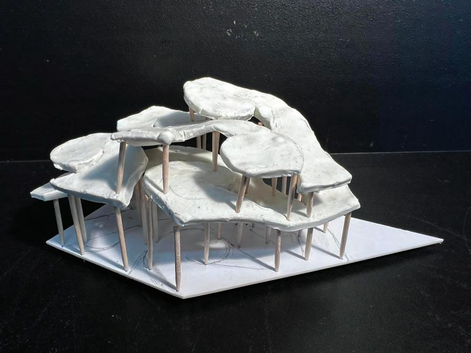 Pavillion Project - sem. 1 2022 1:200 MAQUETTE MODEL - BUILDING FORM MATERIALS: clay, toothpick, white cardboard 66