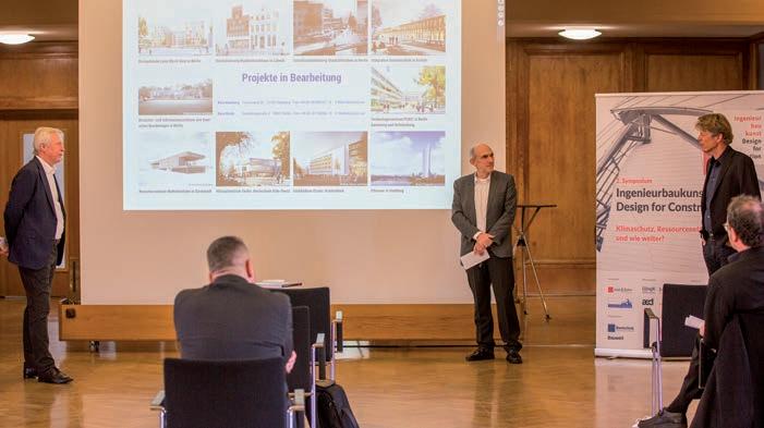 Am 24. November 2020 fand in der Berlin-Brandenburgischen Akademie der Wissenschaften das hybride 2. Symposium Ingenieurbaukunst – Design for Construction (IngD4C #2) unter dem Motto „Klimaschutz, Ressourceneffizienz und wie weiter?“ statt, das auf Diskurs und Projekten des neuen Jahrbuchs Ingenieurbaukunst 2021 beruht. Der Initiator und Moderator des Symposiums Dr. Bernhard Hauke (Ernst & Sohn) hielt fest, dass Wissenschaft und Baukunst das Handwerkszeug der Bauingenieur/-innen sind, nachhaltiges Bauen aber das übergeordnete, gemeinsame Ziel sein muss (Bild 1). IngD4C möchte diskutieren, was heute schon möglich ist und wohin uns zukünftige Entwicklungen führen. Prof. Lamia Messari-Becker (Uni Siegen, Club of Rome) forderte entsprechend zum Auftakt mehr Materialeffizienz, Kreislaufwirtschaft und eine Anpassung der Baunormen.