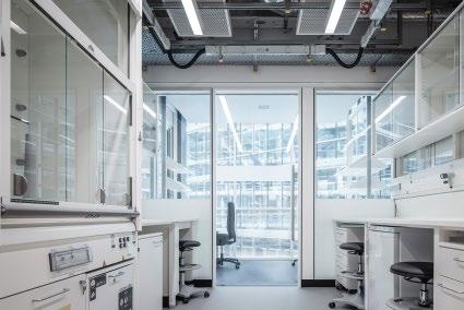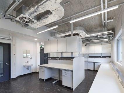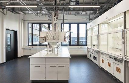 Das Gebäude H der Fakultät für Chemie an der Georg-August-Universität Göttingen wurde erfolgreich nach den neuesten technischen Standards für die chemische Forschung umgebaut und ausgestattet. Es folgen Arbeiten am Gebäude J und am Hörsaalgebäude K, für das ebenfalls bereits detaillierte Planungen vorliegen. Ein weiterer Schwerpunkt war der Neubau eines Übergangsgebäudes als zentrale Verbindungsstruktur zwischen verschiedenen Instituten. Ergänzend wurde ein modernes Stickstoffaußenlager geplant und erfolgreich in Betrieb genommen. Der gesamte Bauprozess wurde im laufenden Betrieb der Fakultät realisiert – eine besondere Herausforderung für das Team von ERNST2 ARCHITEKTEN AG. (s. S. 6–8, Foto: Lioba Schneider Architekturfotografie)