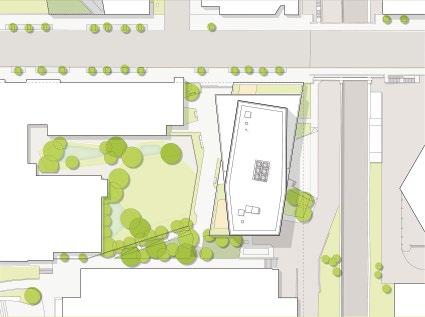 Der Lförmige Neubau umfasst sechs oberirdische Geschosse und zwei Untergeschosse. Die kompakte Bauweise und die effiziente Grundrissorganisation des Gebäudes bieten optimale Voraussetzungen für eine nachhaltige und wirtschaftliche Nutzung.