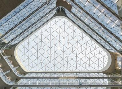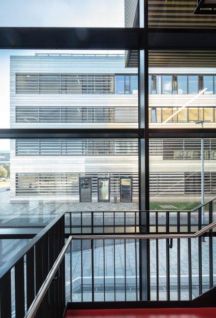 Lichtdachsysteme von VELUX Commercial tragen zu einer gleichmäßigen Tageslichtversorgung und zu einer kontrollierten Frischluftzufuhr bei. Das System VELUX Modular Skylights für Lichtbänder, Satteldach, Sheddachoder Atriumverglasungen ermöglicht großflächige Tageslichtöffnungen im Dach – so auch bei der Sanierung der Universität Jean Moulin in Lyon durch AIA Architectes. Das symbolträchtige Gebäude aus dem 19. Jahrhundert wurde den neuesten Lehr und Lern, Energie und Sicherheitsstandards angepasst. Im Dachgeschoss sorgen nun 130 Module für helle Seminar und Bibliotheksräume. Im Neubau der Glemstalschule in SchwieberdingenHemmingen in BadenWürttemberg von Auer Weber Architekten schaffen zwei Lichthöfe attraktive Begegnungszonen. Für die Verglasung der Atrien wurde das selbsttragende PfostenRiegelSystem BA gewählt, das dort aus jeweils 15 feststehenden und einem öffenbaren Glaselement besteht. Dies ermöglicht neben einem großflächigen Tageslichteinfall auch einen bedarfsgerechten Luftaustausch.