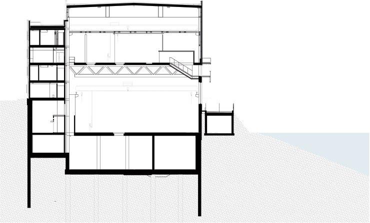 Im Inneren wird das Gebäude durch die Nutzung und die Anforderungen des Baustoff Technikums geprägt. Robuste, oberflächenfertige Massivwände, ein strapazierfähiger Terrazzoboden und eine offene, flexible Technikinstallation prägen die Innenraumgestaltung. Für Teile des baulichen Brandschutzes kamen innovative Lösungen der PRIORIT AG zum Einsatz.