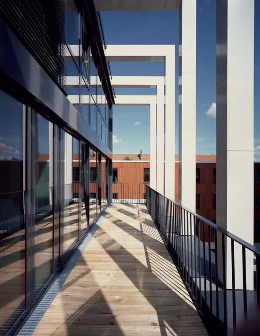 Laubengänge: Brettschichtholz mit Fertigteildecken