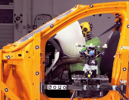 bag-Entwicklung bereits in einer frühen Phase auf den Komponentenprüfständen detektiert werden und die Simulationsprognosen der Versuche gezielt optimiert werden. Durch die Flexibilität des Projektionsprinzips kann das Gospe3D-Messystem an verschiedene Messfelder und -aufga ben individuell angepasst werden: von etwa 0,7 × 0,7 bis 2 × 2 m². Neben verschiedenen AirbagVersuchen konnte Gospe3D bei Volkswagen daher unter anderem bereits für FußgängerschutzVersuche eingesetzt werden.