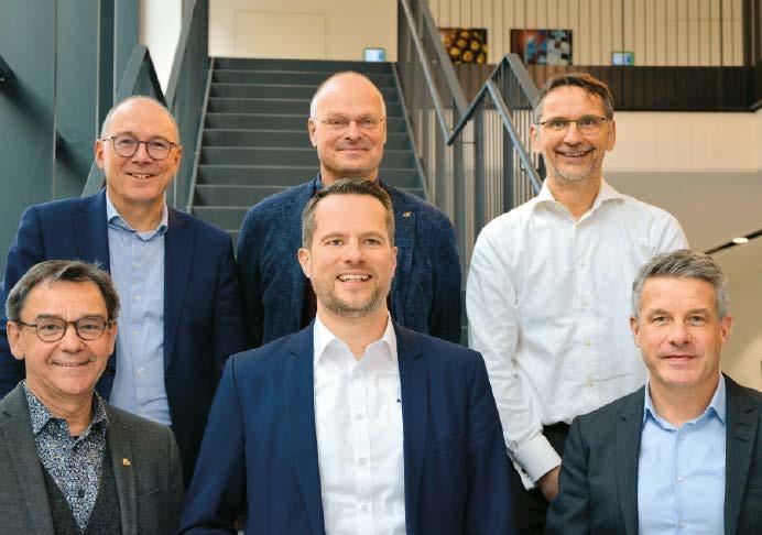 Der Vorstand der VDMAFachabteilung Machine Vision: obere Reihe, von links: Holger Wirth (Isra Vision), Dr. Olaf Munkelt (MVTec Software), Markus Maurer (Vitronic); untere Reihe, von links: Dr. HorstHeinol Heikkinen (Asentics), Daniel Seiler (AT Sensors), Hardy Mehl (Basler)