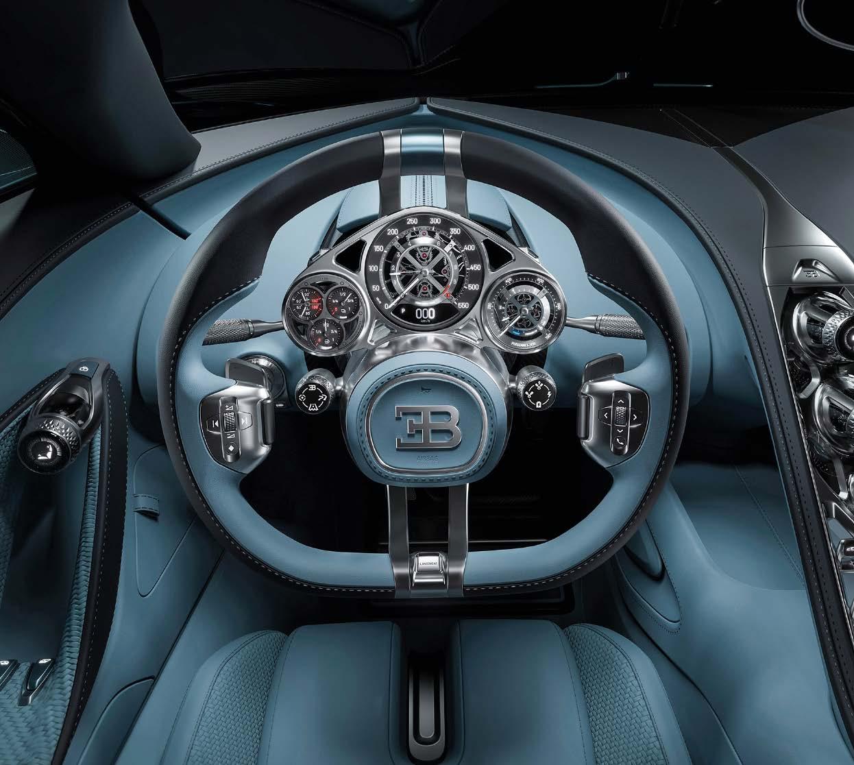 Schrittmotoren übersetzen im Bugatti Tourbillon digitale Signale des Bordcomputers auf ein analoges Schweizer Uhrwerk