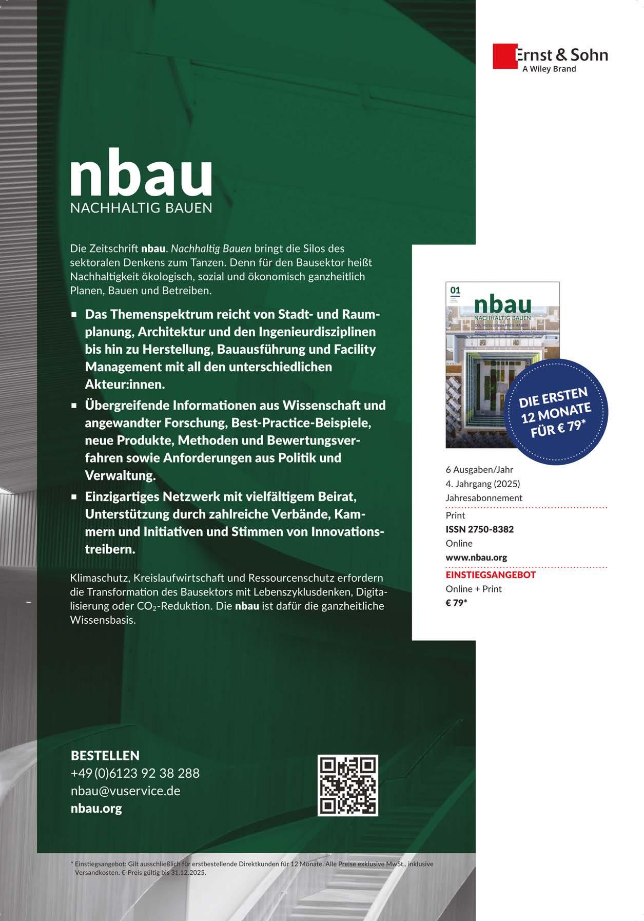Hinweise zu Manuskripten: www.ernst-und-sohn.de/hinweise-für-zeitschriftenautorinnen-und-zeitschriftenautoren Aktuelle Bezugspreise