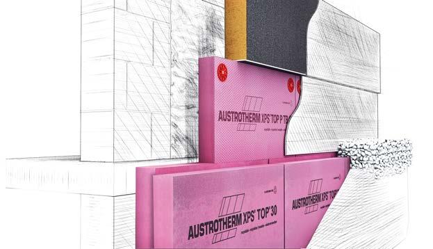 Darüber hinaus ermöglichen die Produkte von Austrotherm durch hervorragende Lambdawerte von 0,027 W/mK beziehungsweise bis 0,039 W/mK je nach Einbausituation eine effektive Wärmedämmung und damit eine Vermeidung von Wärmebrücken. Wie dies in der Praxis aussehen kann, zeigt das folgende Beispiel. Die Herausforderung besteht darin, dass trotz des erhöhten Dämmbedarfs im Keller ein einheitlich niedriger U-Wert über die gesamte Fassade erreicht werden muss: