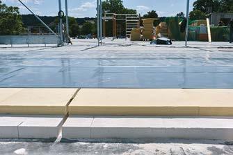 Bild 4 Die Dachfläche erhielt eine Schicht aus Mineraldämmplatten, darauf folgten PU-Gefälledämmplatten und abschließend EVALASTIC-Bahnen