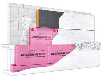 Eine weitere Besonderheit stellt die Entstehung von Wärmebrücken in diesem Bereich dar. So bestehen Keller meist aus Beton und weisen damit deutlich schlechtere Dämmeigenschaften auf, als das Mauerwerk darüber. Beton benötigt also eine wirkungsvollere Wärmedämmung als Ziegel. Ziel muss dabei sein, Wärmebrücken zu vermeiden und den U-Wert über die gesamte Fassade gleich niedrig zu halten. Dies gelingt nur mit hoch entwickelten Produkten, die speziell für den Sockelbereich angeboten werden. Obwohl Sockeldämmplatten keiner bauaufsichtlichen Zulassung bedürfen, empfiehlt es sich, spezielle Sockeldämmplatten mit Eignung für Abdichtungen im Spritzwasserbereich nach DIN 18533 W4 zu verwenden, wie z. B. die Produkte Austrotherm XPS Premium P sowie Austrotherm XPS Plus P und TOP P. Sie bestehen aus kapillar nicht wasserleitendem XPS, was der Trockenhaltung der Bausubstanz dient, andererseits aber auch die volle Dämmwirkung auf Dauer sicherstellt. Denn ein nasser Dämmstoff kann nicht mehr dämmen.