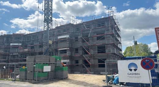 Der U-Wert der doppelschaligen Außenwand verbesserte sich erheblich, von 1,8 auf 0,38 W/(m 2 K). Das Gebäudeenergiegesetz (GEG) fordert bei der Einzelmaßnahme „Fassadendämmung“ zwar grundsätzlich einen U-Wert von maximal 0,24 W/(m 2 K), jedoch gilt die Anforderung als erfüllt, wenn der im Bestand zur Verfügung stehende Hohlraum vollständig mit einer Einblasdä mmung ausgefüllt wird (GEG Anlage 7).