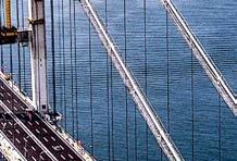 Der Einbau von MAURER Schwenktraversen soll die Hängebrücke befahrbar machen und im Falle eines Erdbebens vor horizontaler Überlast schützen.