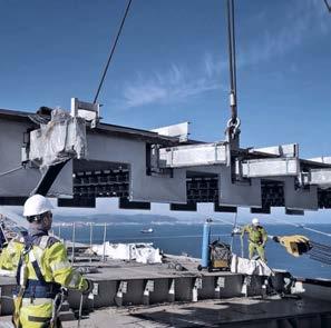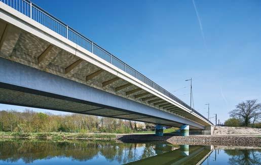 Zum Titelbild: Die modulare Verbund-TrägerrostBauweise (VTR®) wurde erstmals in Deutschland umgesetzt. Unter Aufrechterhaltung des Verkehrs und in kürzester Bauzeit wurde die stark frequentierte Elisabethbrücke im Zuge der Mansfelder Straße in Halle (Saale) ersatzweise neu gebaut. Ein Großteil der Fertigungsschritte wurde von der Baustelle ins Werk verlagert. Der Beitrag beschreibt Technologie, Zusammenbau und Besonderheiten aus Sicht der Tragwerksplanung. Das Titelbild zeigt die Untersicht des fertiggestellten Überbaus mit den markanten StahlLängsträgern und den ergänzenden Betonfertigteilen. (siehe auch Beitrag ab S. 632).