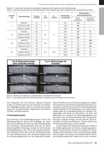 6 Nachhaltigkeitsaspekte Zur Bewertung der Nachhaltigkeitsaspekte wurde eine Ökobilanzierung der Betone auf Grundlage der Basisdaten aus der Ökobau.dat 2010, der GaBi Datenbank [24], des Netzwerkes Lebenszyklusdaten [25] und der EFCA [26] durchgeführt. Einbezogen wurden die fünf zentralen Wirkungskategorien, über deren Berechnung internationaler Konsens besteht. Dies sind das Treibhauspotenzial, das Ozonabbaupotenzial, das Eutrophierungspotenzial, das Versauerungspotenzial und die bodennahe Ozonbil-