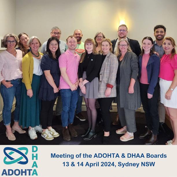 n A big thank you to NSW for hosting the joint DHAA - ADOHTA board meeting on 13-14 April to progress the creation of a new association for our profession. The meeting was a success with a unification proposal