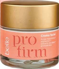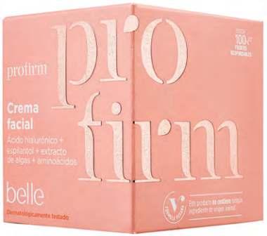 CREMA FACIAL PROFIRM belle Formulada para reducir la aparición de arrugas, potenciar la firmeza de la piel y mejorar la hidratación combinando la acción de aminoácidos esenciales como la arginina, la serina y la prolina, con principios activos como el ácido hialurónico, el extracto de acmella o el extracto de alga fucus.