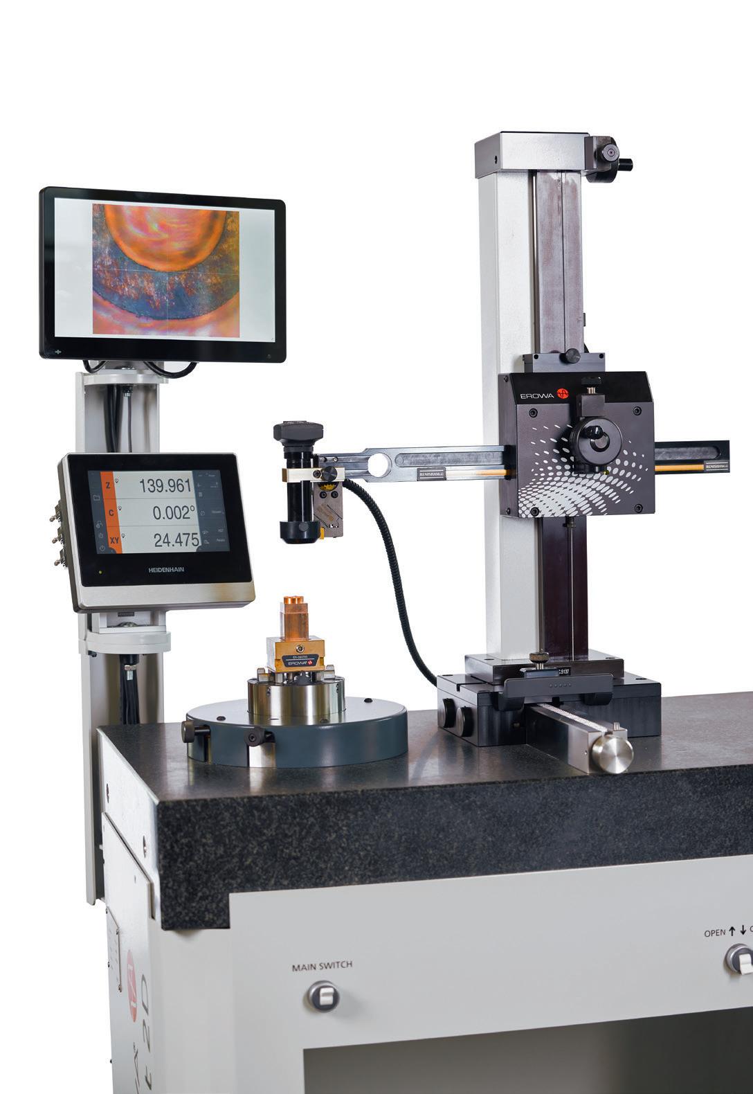 L‘appareil d‘affichage Heidenhain offre une saisie fiable des valeurs de mesure et des évaluations simples. Les macros de mesure intégrées et animées graphiquement facilitent consi dérablement la détermination des données de décalage des électrodes ou des pièces.