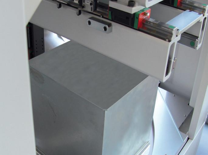 Grâce à sa longue course de sortie, il reste entre la machine et le robot suffisamment de place pour le travail manuel.