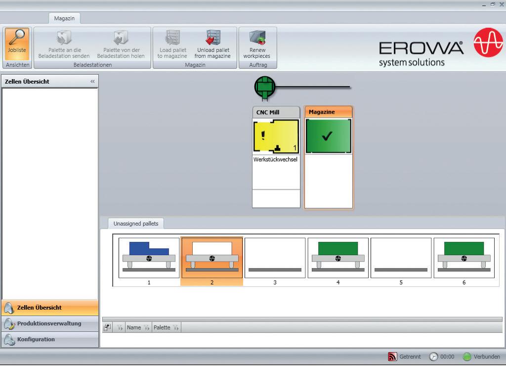 L'opérateur de la machine est informé à tout moment: les programmes CNC, les pièces chargées, le temps d'usinage restant, l'état des outils et d'autres informations sont disponibles en ligne.
