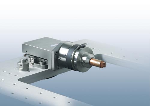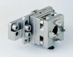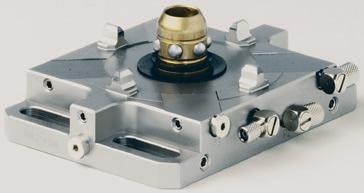 Fixation spécifique pour les pièces cylindriques. Montée sur un support oscillant, la pièce peut être ajustée sur les trois axes.