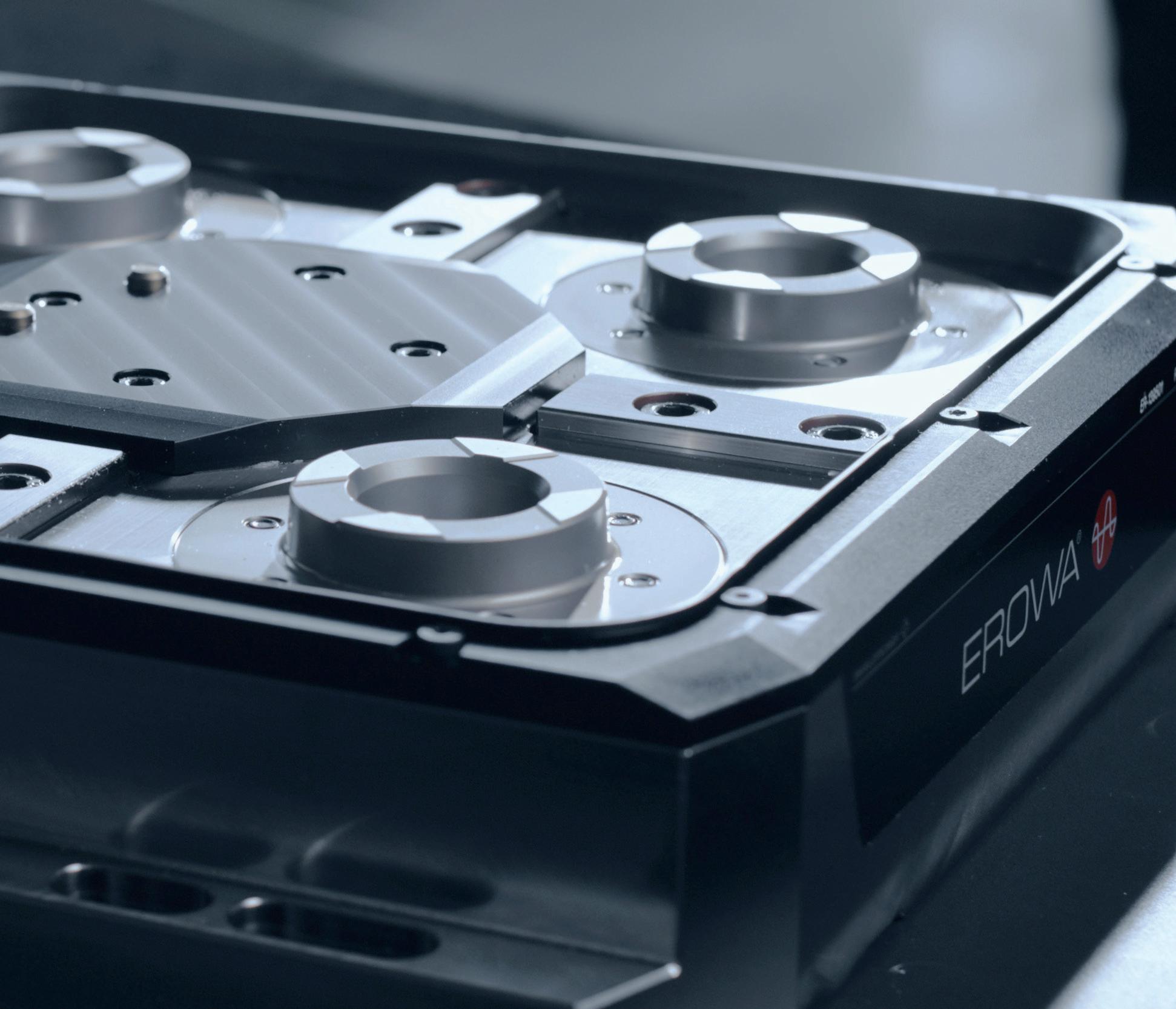 Volle Flexibilität: UPC 2.0 Spannfutter mit PowerChuck P Adapterpalette. Somit können weitere EROWA Spannsysteme auf einfache Weise kombiniert eingesetzt werden.