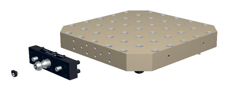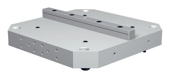 Esecuzione Alluminio, segmenti di centraggio e attacchi montati. Appoggio Z in materiale duro. Maniglie integrate. Fori distanziati di 50 mm per dadi ad innesto M10 (optional). Superficie di montaggio fresata.