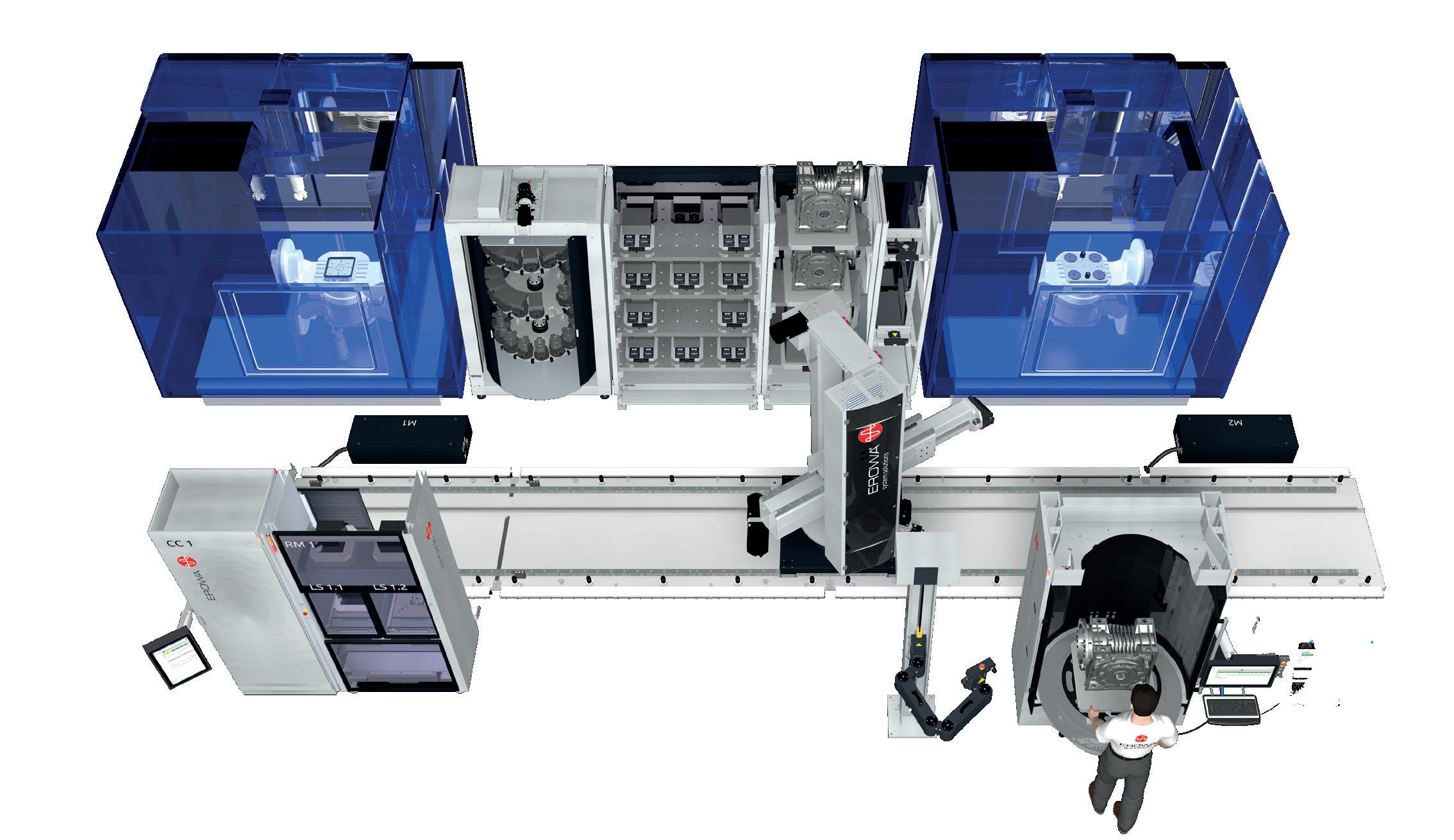 EROWA Robot Dynamic 150 Linear ITS 148 e UPC Tooling, pezzi medi fino a 150 kg.