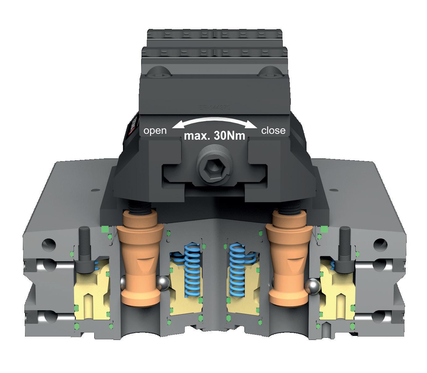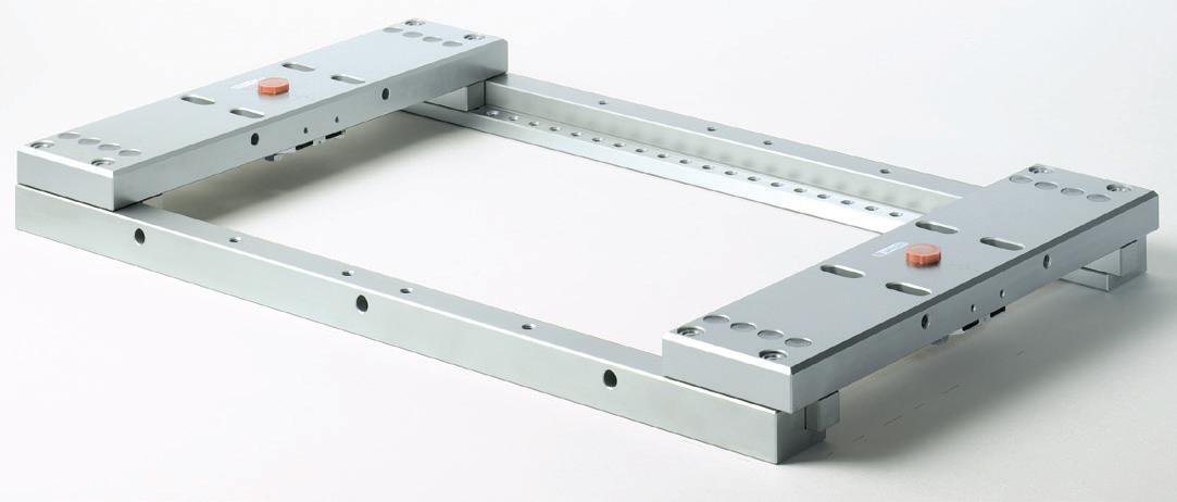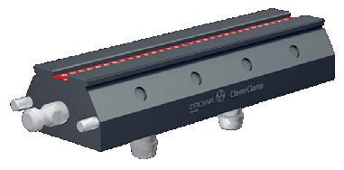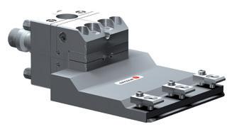 Los anchos perfiles de centrado garantizan estabilidad y precisión con cargas alternas elevadas. El mecanismo de sujeción compensa la dilatación lineal.