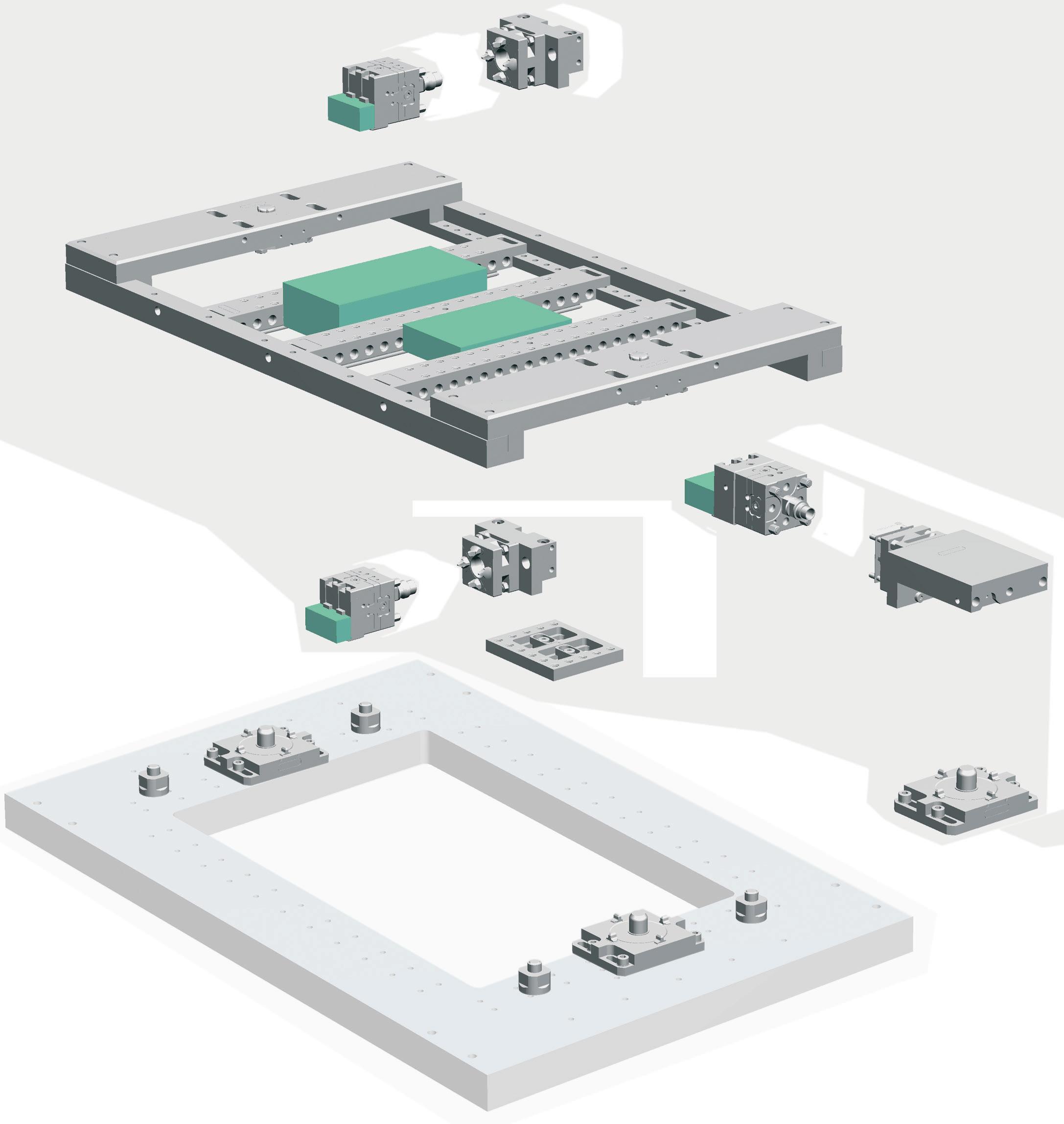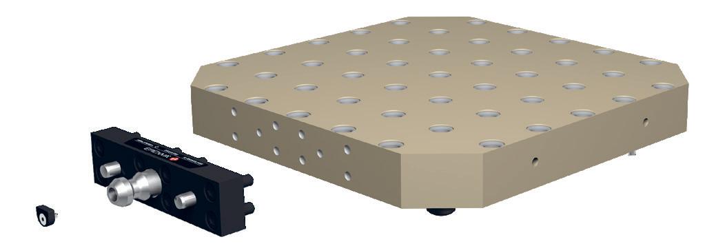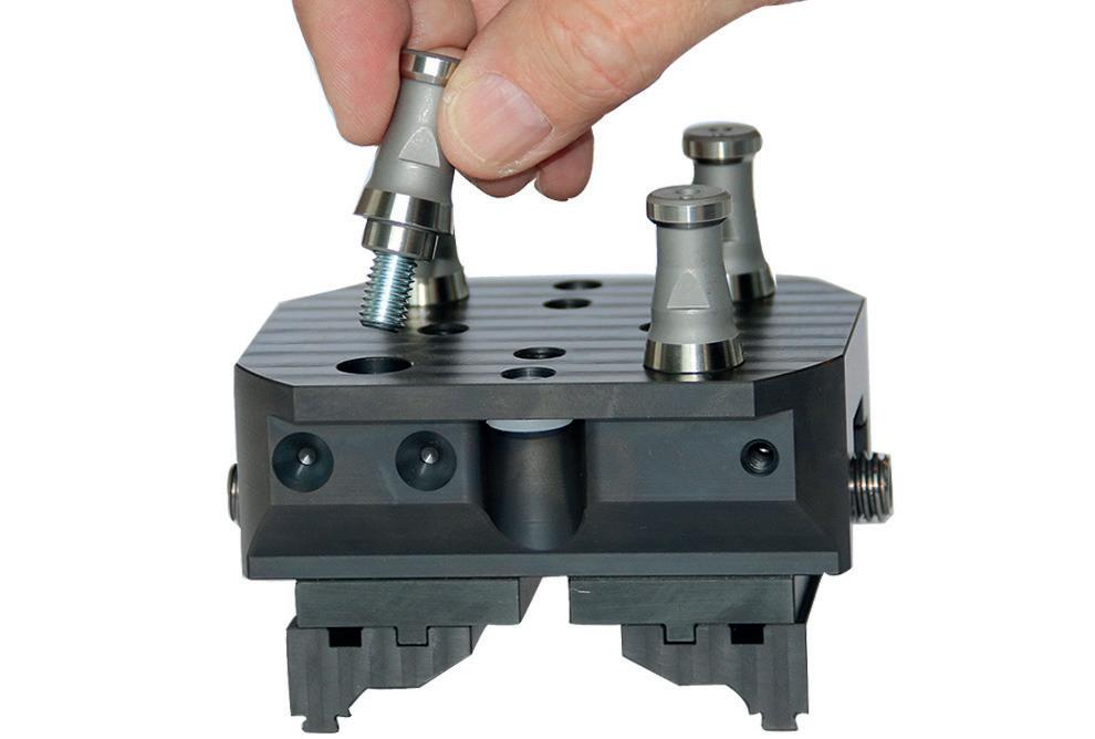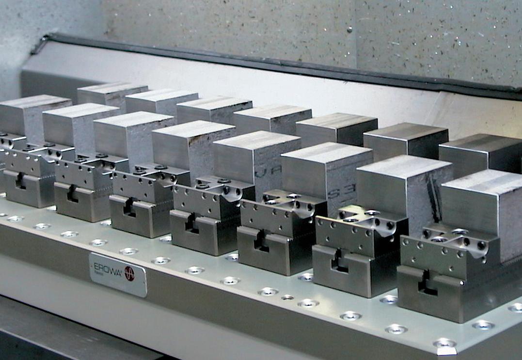 Estandarización de los sistemas de posicionamiento de piezas y de electrodos. La utilización de un sistema de sujeción universal en todas las máquinas herramienta posibilita una flexibilidad total y elimina totalmente los tiempos de montaje en la máquina.