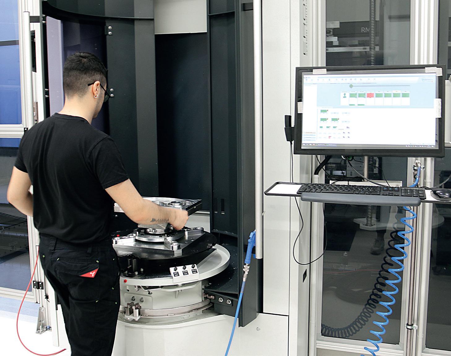 Dazu wird der Prüfprozess in das übergeordnete Leitsystem integriert und automatisiert: Palettisierte Werkstücke werden flexibel und nicht linear automatisiert an die Messmaschine zugeführt – und über Nacht geprüft. So wird unser Engpass – das In-Prozess-Messen – entlastet.