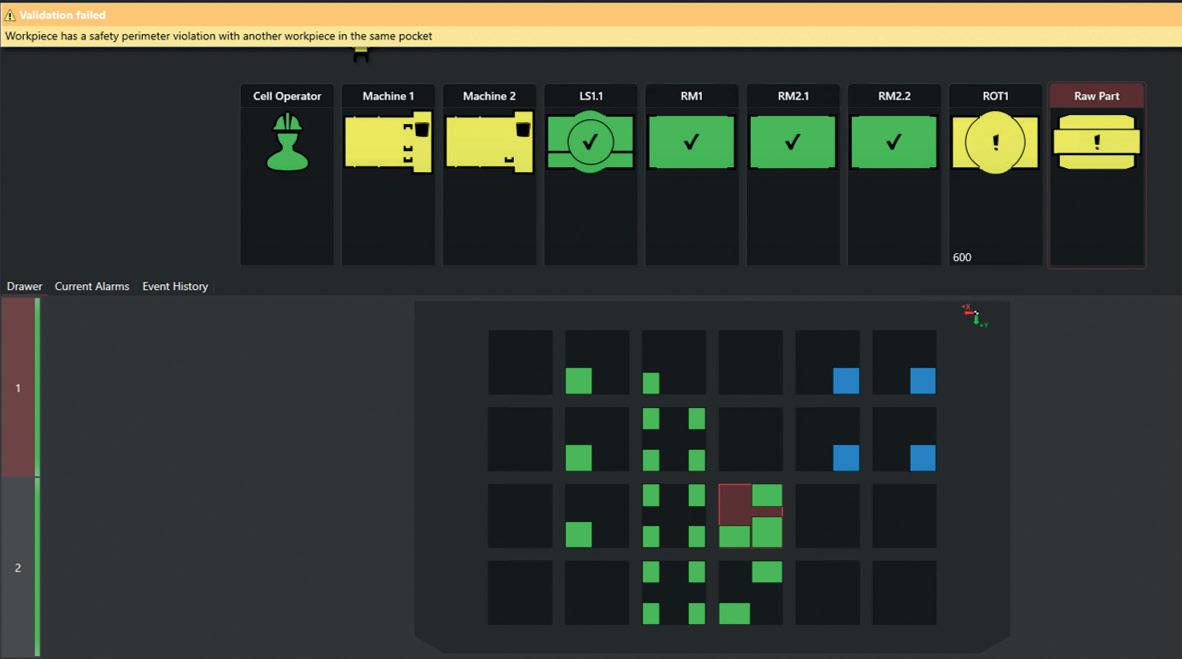 Nahtlose Integration in das EROWA JMS 4.0 ProductionLine Leitsystem – Intuitive Bedienung über den TouchMonitor direkt am Schubladenmagazin. Immer im Blick: Aktuelle Schubladenbeladungen und automatische Validierung von Platzkonflikten.