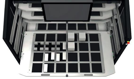 La configuración individual de la rejilla de cajones permite integrar, según sea necesario, placas de rejilla específicas para las piezas en bruto o piezas semielaboradas. Las rejillas individuales en cada cajón crean espacio para una amplia variedad de piezas, maximizando al mismo tiempo la utilización de la capacidad.