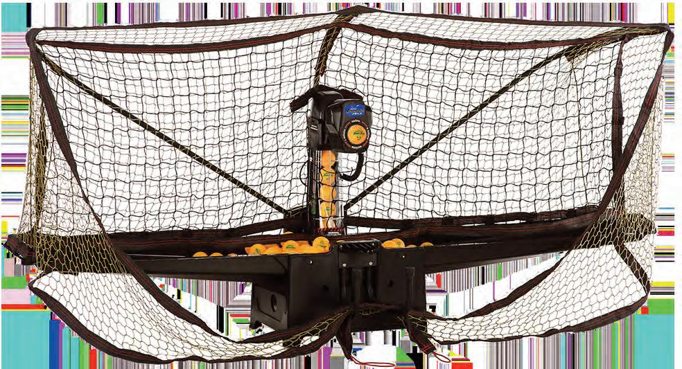 • Einfach montierbares Rundumnetz. Aufgefangene Bälle laufen zum Förder system des Geräts und stehen für den Dauerbetrieb zur Verfügung.