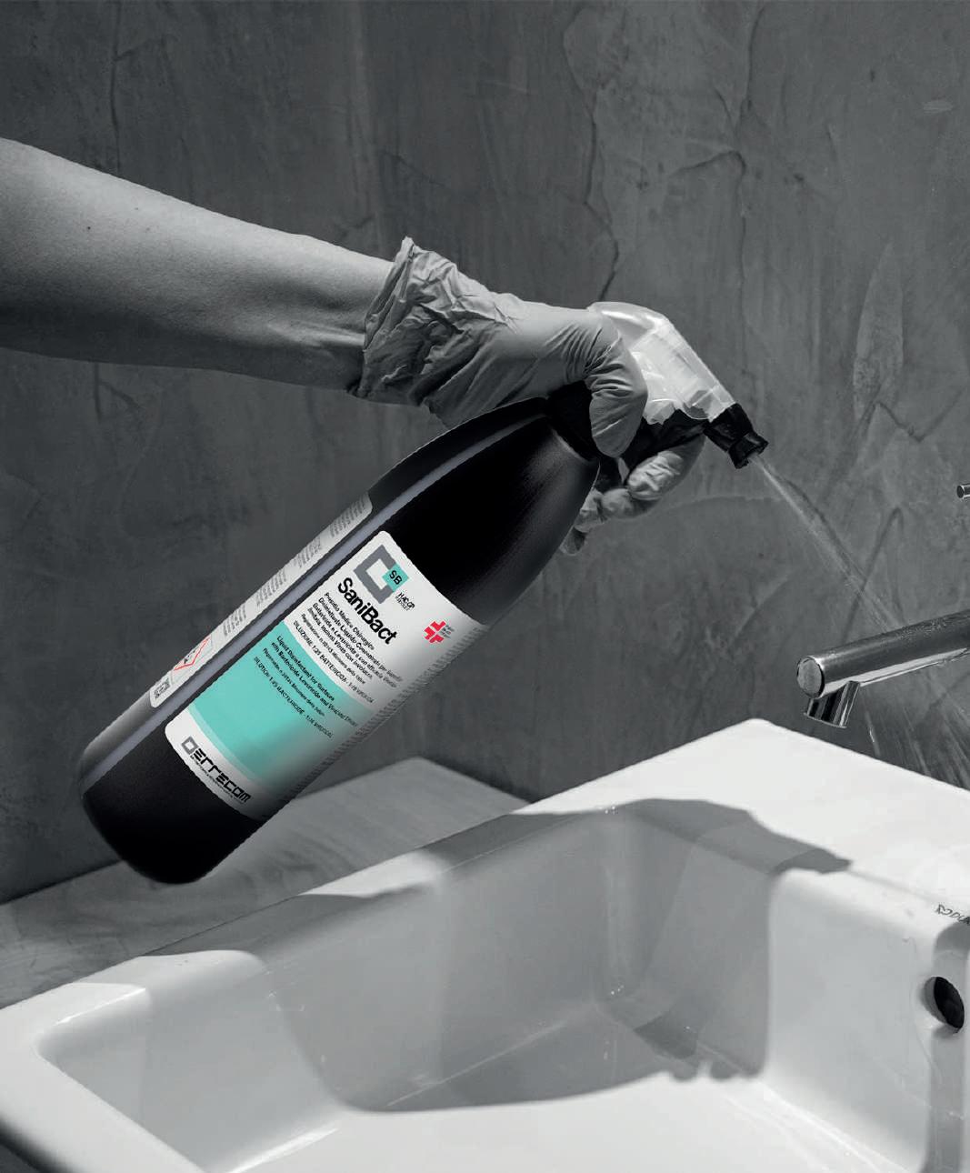 ■ 其配方基于 3 种协同作用的活性物质,使 SaniBact 成为一种强 大的消毒剂,适用于不同情况。