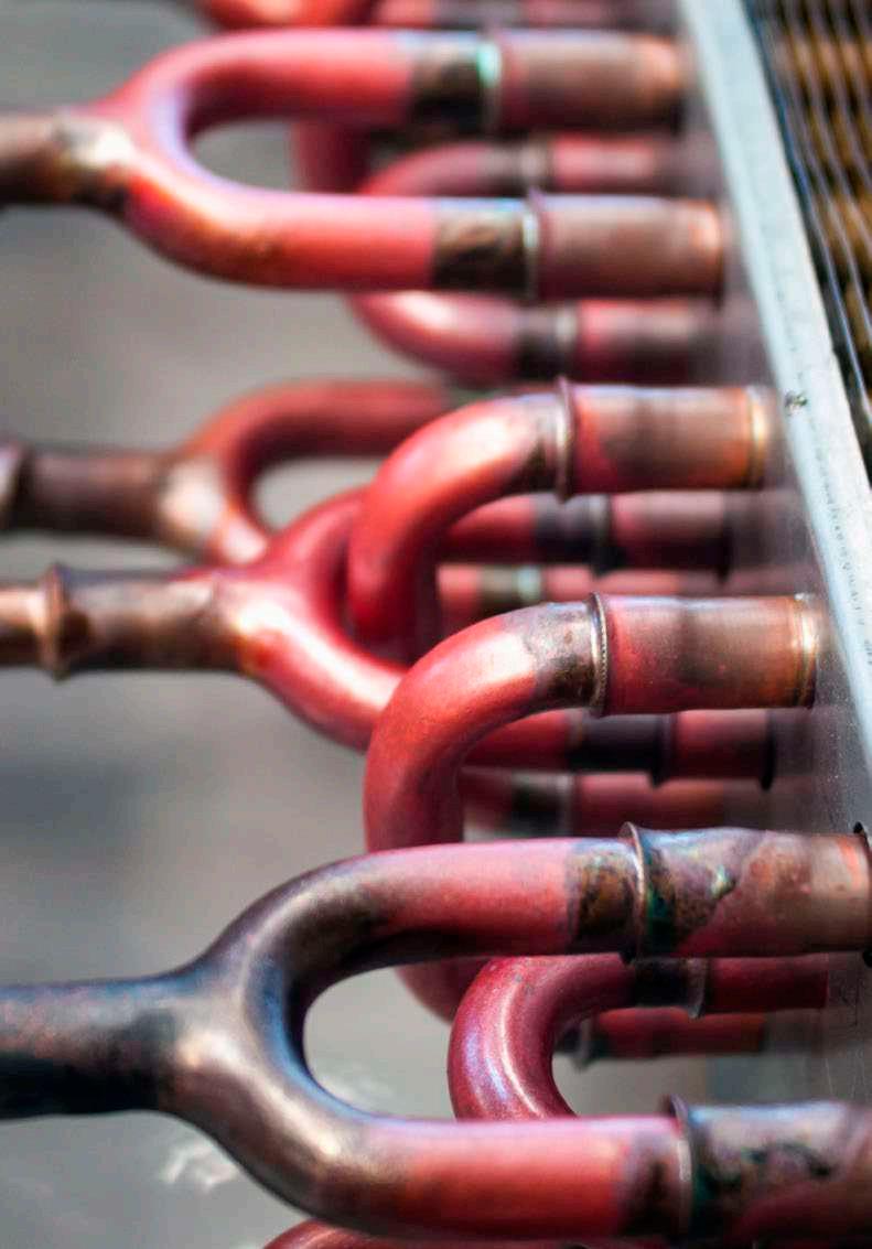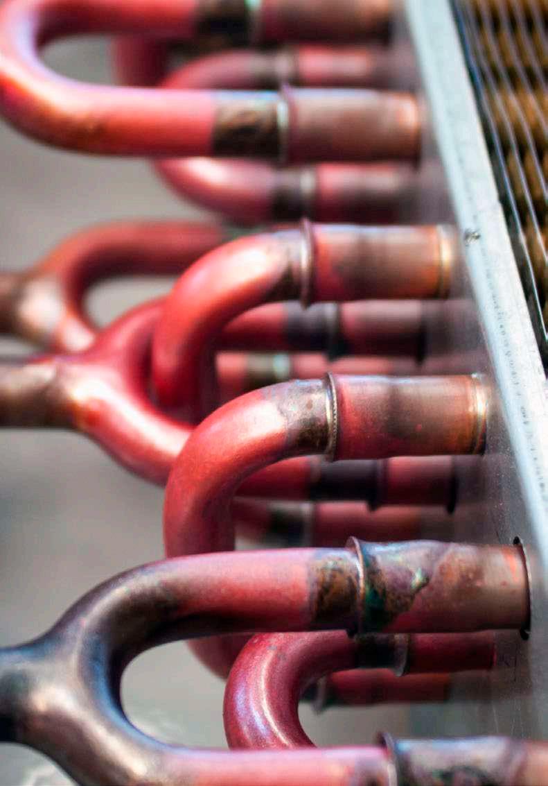 Pérdida de gas refrigerante, incrustaciones de aceite, humedad, acidez y suciedad acumulada en los serpentines con aletas. Los sistemas de aire acondicionado y refrigeración no están pensados únicamente como un conjunto de componentes mecánicos. El gas refrigerante y el lubricante también contribuyen a su funcionamiento, elementos que, si se descuidan, con el tiempo, inevitablemente sufren descomposición química.