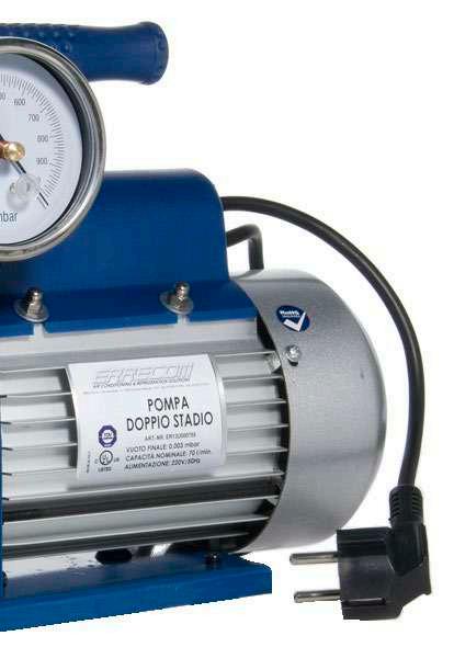 Art.-Nr. Capacidad (l/min) Vacío Final (mbar) Aceite (mL) Dimensiones (mm) Peso (Kg) €/Cad. VP1017.01 70 0,003 250 315x124x240 8,6 61Accesorios para el Mantenimiento de los Sistemas de Aire Acondicionado y Refrigeración Accesorios para el Mantenimiento de los Sistemas de Aire Acondicionado y Refrigeración