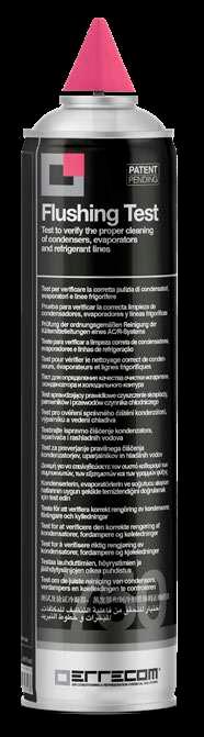 Test para verificar la correcta limpieza de los condensadores, evaporadores y línea frigoríficas Si el color CAMBIA, LAVAR el sistema Si el color NO CAMBIA, ENCENDER el sistema Resultado claro e inmediato. Certifica la correcta limpieza PATENT PENDING
