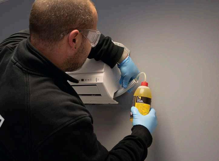 Al eliminar la fracción de aceite depositado sobre las líneas frigoríficas, se restablece el intercambio de calor con el gas refrigerante y las líneas frigoríficas, el diámetro original de las tuberías y la eficiencia del sistema.