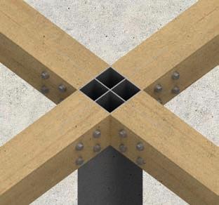 Double mass timber frame structure with steel cables bracing and 400x400mm steel box as an integrated system