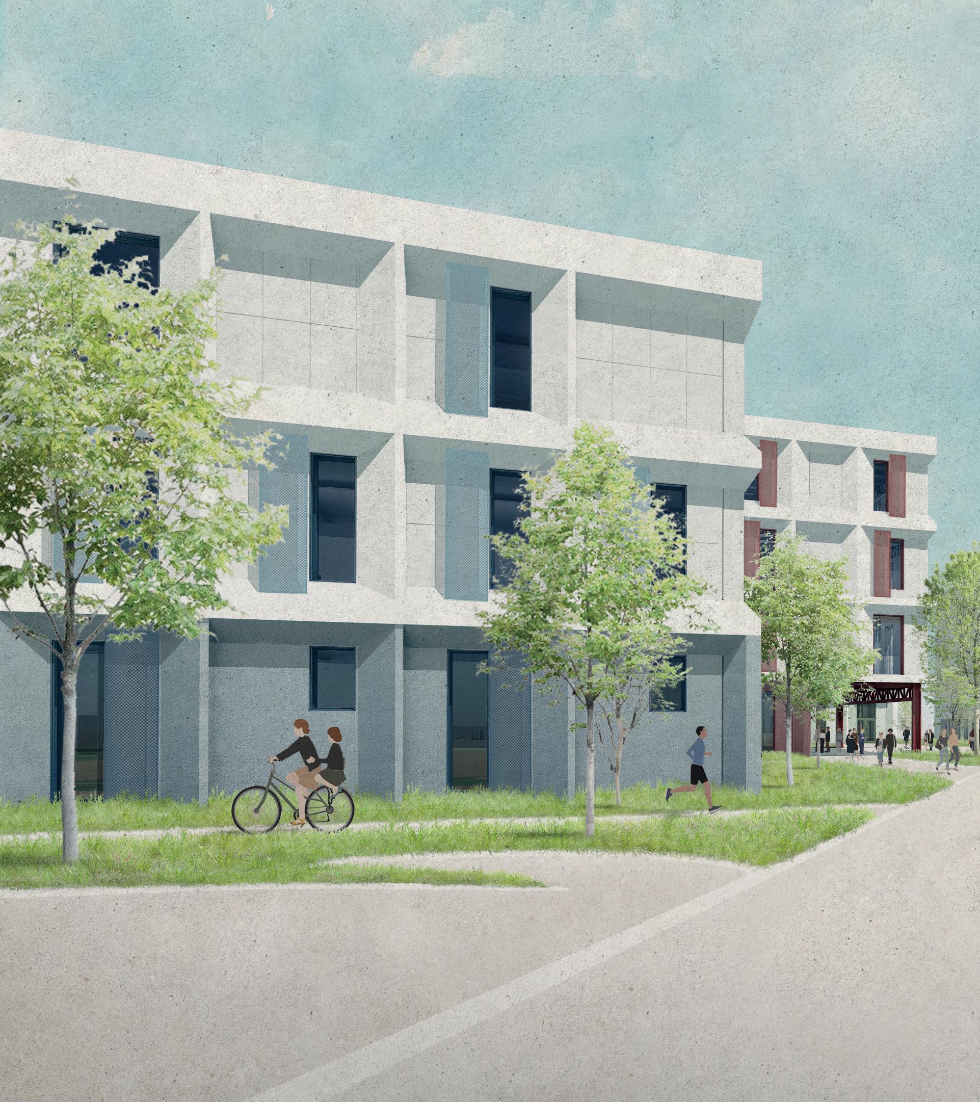 as well as a combined workshop that integrated both fields. It paired with 124 students accomodation quarters as well as public engagement provisions. The education and accommodation provisions are housed in separate building forms each optimised to their use. A public front towards Swindon is also a key consideration.