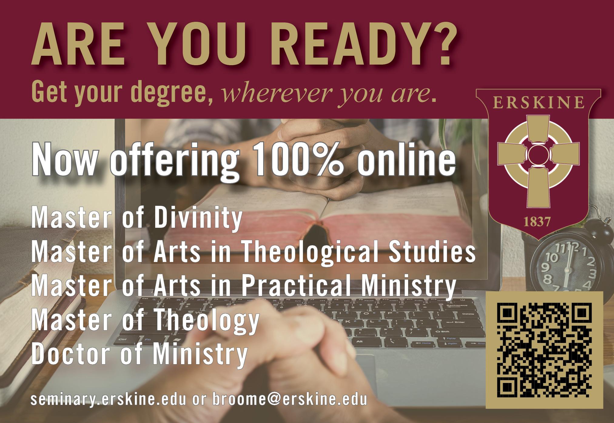 Erskine Theological Seminary, an agency of the Associate Reformed Presbyterian Church, exists because Jesus Christ calls laborers for His harvest who are skilled in handling the Word of God.