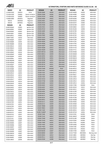 ALTERNATORS, STARTERS AND PARTS REFERENCE GUIDE O.E.M. - AS NIKKO