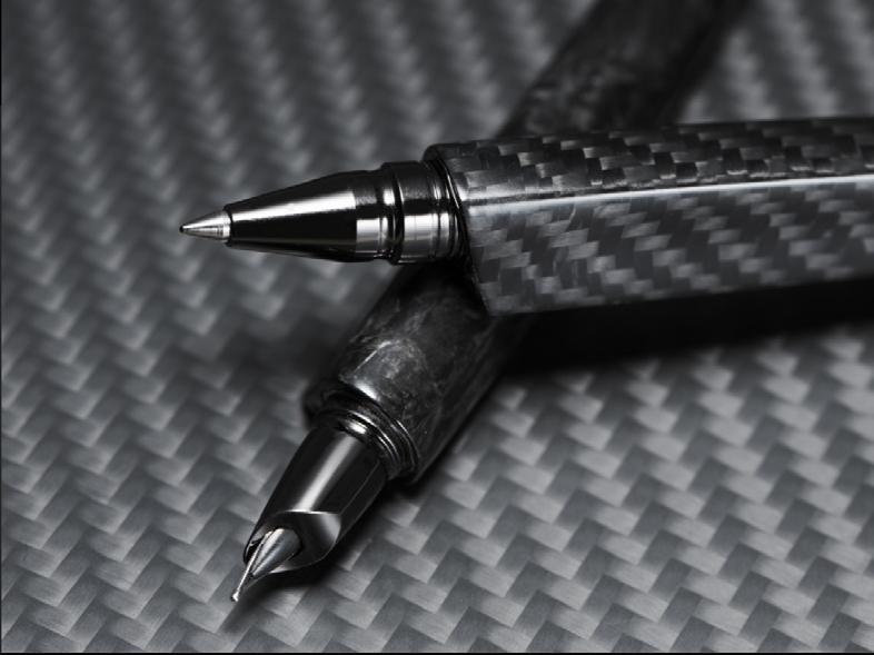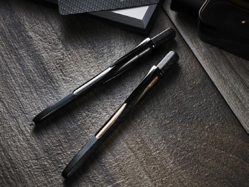 The three-axis streamlined swirling shape of the pen body is composed of shapes, which are like objects traveling mysteriously in the deep sea, waiting for opportunities; the outer part is integrally formed of carbon fiber, and the internal structure uses the aluminum alloy pen tube; the hollow pen body is matched with the internal mechanism to show the perfect counterweight.