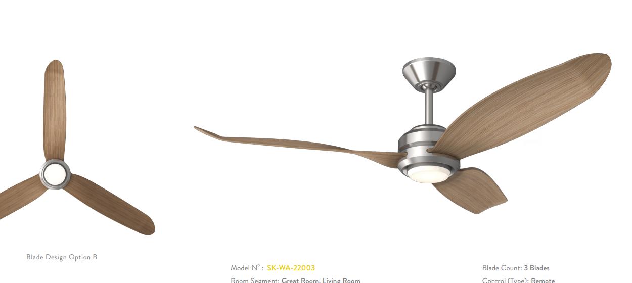 P 108 CASTLE 56” Ceiling Fan Designed in Studio Kubrick Room Segment : Great Room, Living Room Finishes : ( Shown Right ) Blade Materials : Plywood Blade Count : 4 Blades Control (Type) : Remote Wet / Damp : Damp Light Kits : 18W CCT