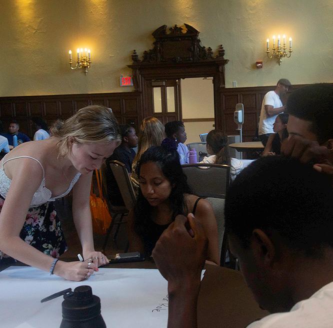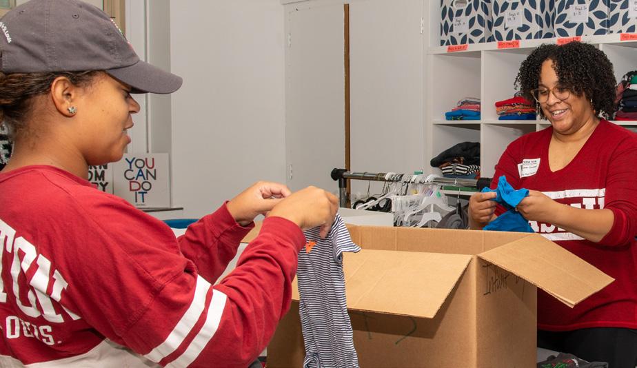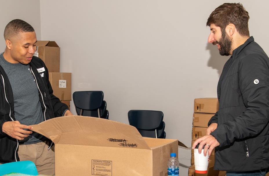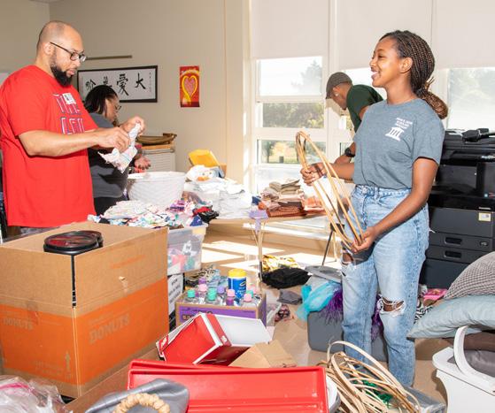 The gathering started with an opportunity to volunteer with the University City School District, exemplifying one of the core pillars of the Ervin Scholars: community service. Projects included assembling take-home bags and sorting shoes for students, putting up bulletin
