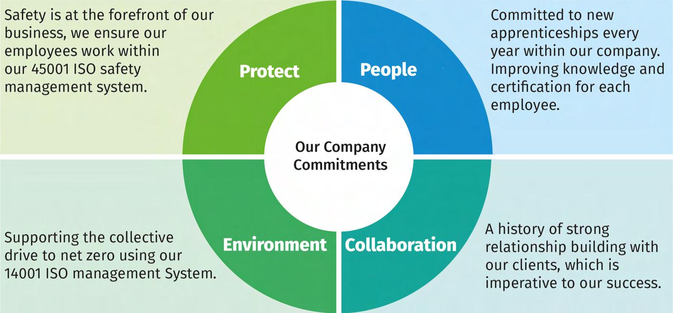 Health and safety performance is continually monitored through improvement plans, audit programmes and regular inspections that are supplemented by the accreditations we maintain including ISO 45001 and Safety Schemes in Procurement (SSIP). We understand that the quality of our work has a direct bearing on our reputation. We’re committed to supplying a service that meets and exceed our client's quality andsafetyrequirements.
