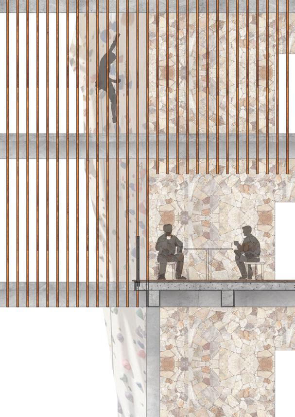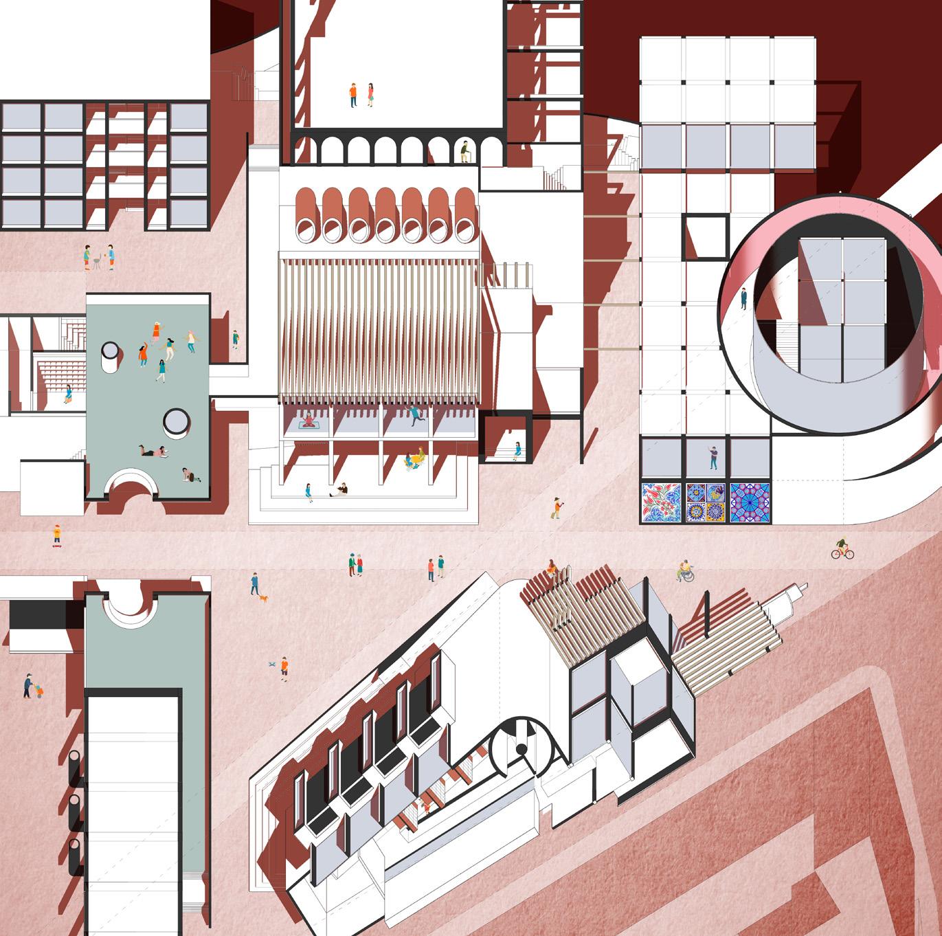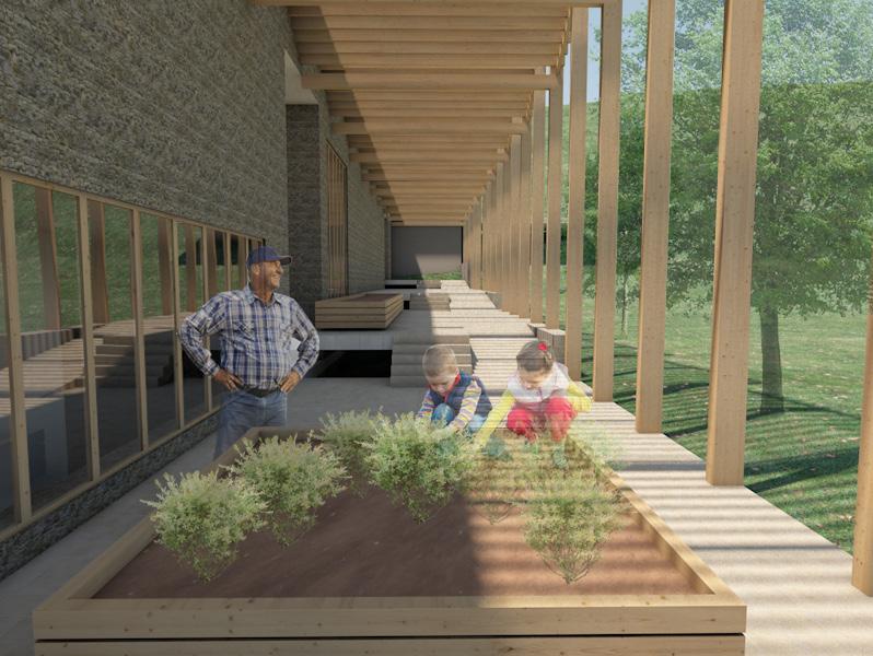 Recent research has shown that older people in the community can potentially play a critical role in the development of younger and older children. Older people often have a wealth of skills, with knowledge and experience which can be passed on to younger generations. By combining public functions that involve both young and old, in indoor and outdoor educational and physical activities - both groups can bene t from the advantages that intergenerational engagements can o er. Hub at the Edge does not only aim to act as an anchor at the east wall edge to connect the inner walled city with the outer territory but also to create a community hub inside Figline’s old town that can house di erent services for all generations under one roof, allowing old and young to bring new energy, knowledge and enthusiasm to each other’s lives.