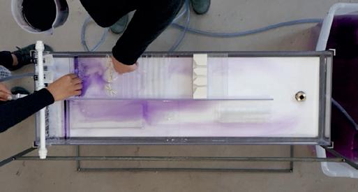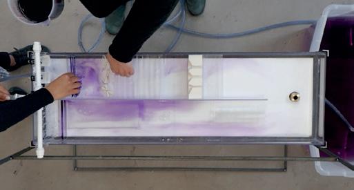 Students began by designing one of three types of physical environmental models: wind tunnels, water tables and lling tanks. All three are instruments that materialise air ow within a controlled environment and in relation to a scale architectural model. Environmental models are architectural models, but they are architectural models with the added demand of creating a controlled, steady-state environment that materialises air ow. is materialisation focuses attention on the relationship between buildings, instruments, environmental phenomena and their idealisations, operating at full scale in the ‘real’ world. us, environmental models operate as potent lenses for reconciling the scales and problematics of working with consequential environmental processes that extend beyond the conventional scales of architectural investigation.