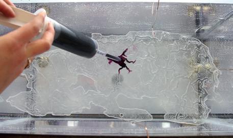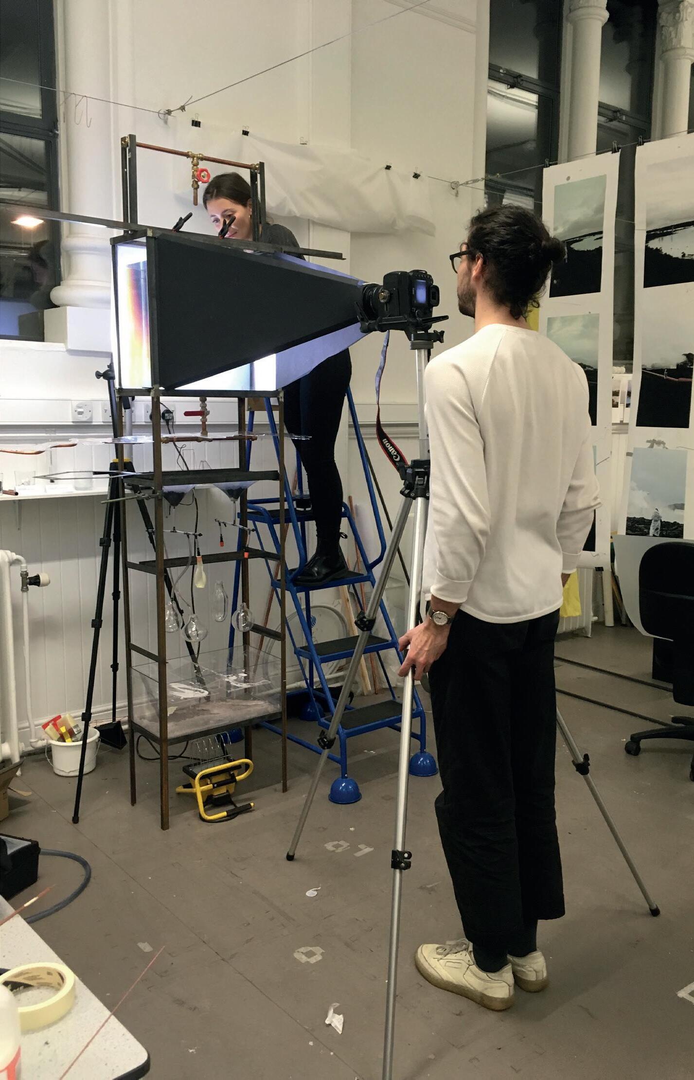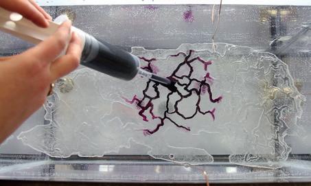 We visited Iceland, moving from the controlled environment of the studio to a ‘real’ environment of visceral thermal variability, a landscape of stark contrasts. Iceland’s once uid volcanic foundations meet its arctic atmosphere at the earth’s surface, resulting in natural and manmade ethereal blue hot springs, geysers, and thermal pools set amidst black volcanic rock and green moss. Iceland’s horizon is punctuated by streams of steam where hot and cold fronts meet.